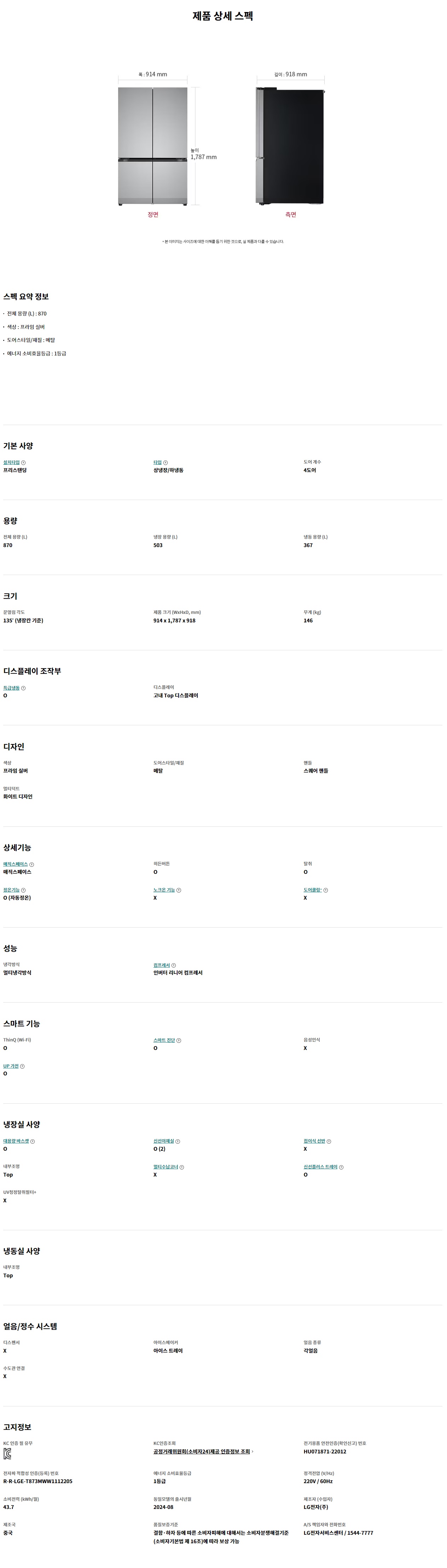 [LG] 디오스 오브제컬렉션 매직스페이스 냉장고 870L 프라임실버